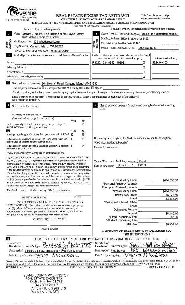 | 2 | 05/17/2022 | EZ | Easement | NEEDHAM, SANDRA ELLEN | PUGET SOUND ENERGY | | | $4,841.00 | 53256 | 4545865 |