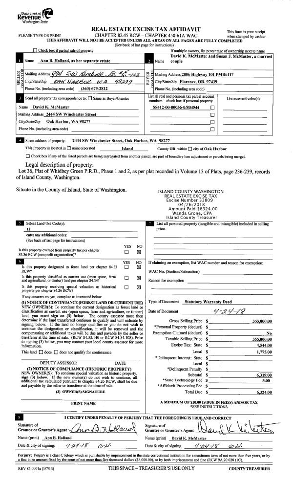 | Tax Area: | 719 - APPRAISER-S Whid Schl Dist, outside Langley, vacant & 50 acres or less | Land Use Code | 91 |