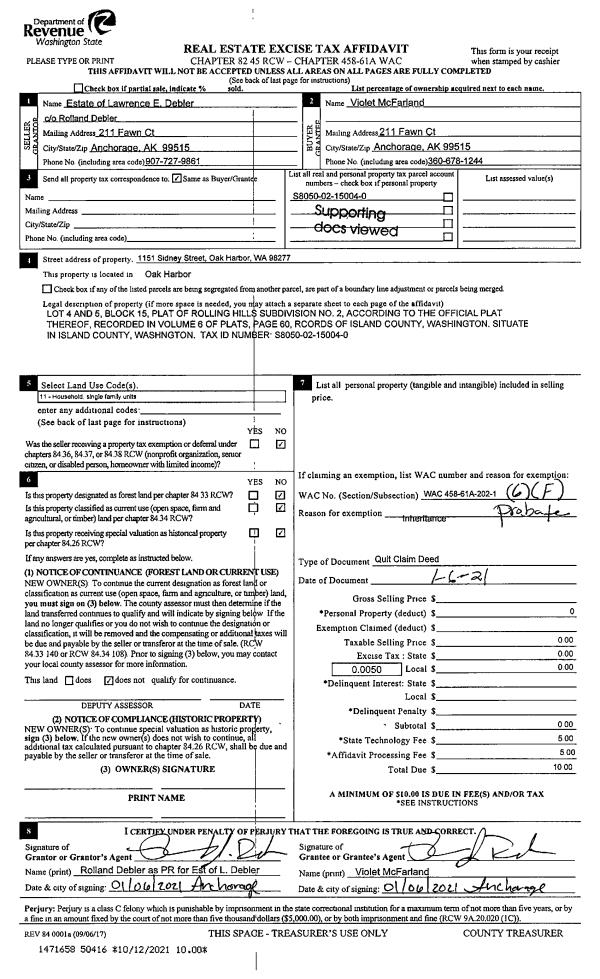 | Tax Area: | 712 - APPRAISER-S Whid Schl Dist, outside Langley, improved, greater than 1 acre | Land Use Code | 11 |