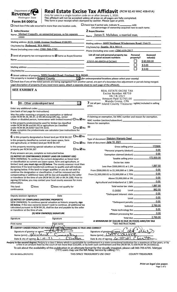 | Tax Area: | 712 - APPRAISER-S Whid Schl Dist, outside Langley, improved, greater than 1 acre | Land Use Code | 11 |