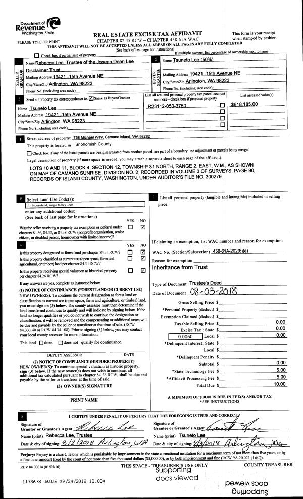 | Mailing Address: | DEBORAH DAVIDSON-LARSGAARD 7557 HAMILTON LN CLINTON, WA 98236 | % Ownership: | 100.0000000000% |