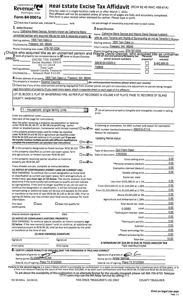 | Mailing Address: | 33575 STATE ROUTE 20 OAK HARBOR, WA 98277-8744 | % Ownership: | 100.0000000000% |