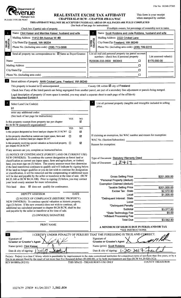 | Tax Area: | 719 - APPRAISER-S Whid Schl Dist, outside Langley, vacant & 50 acres or less | Land Use Code | 91 |