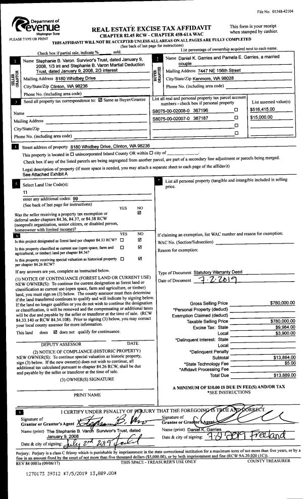 | Tax Area: | 719 - APPRAISER-S Whid Schl Dist, outside Langley, vacant & 50 acres or less | Land Use Code | 91 |