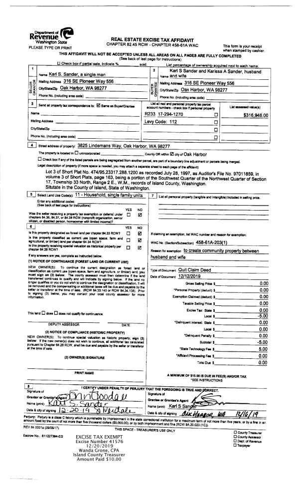 | 12 | 12/01/1994 | QCD | Quit Claim Deed | WANDELL, PATRICIA C | WANDELL, PATRICIA C | | | $0.00 | 45109 | 94026061 |