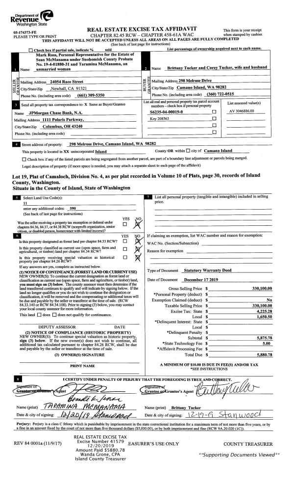 | Tax Area: | 719 - APPRAISER-S Whid Schl Dist, outside Langley, vacant & 50 acres or less | Land Use Code | 91 |