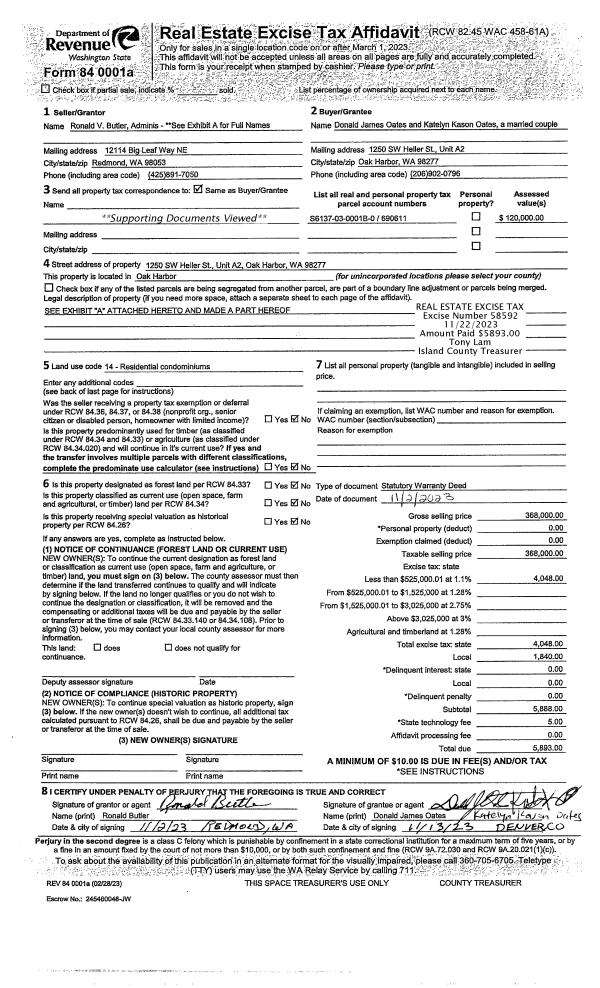 | 6 | 02/20/2014 | QCD | Quit Claim Deed | US BANK OF WASHINGTON TRUSTEE OF THE CHARLES S COLLINS LIVING TRUST | COLLINS TTEE, CHARLES STIMSON | | | $0.00 | 16234 | 436254 |