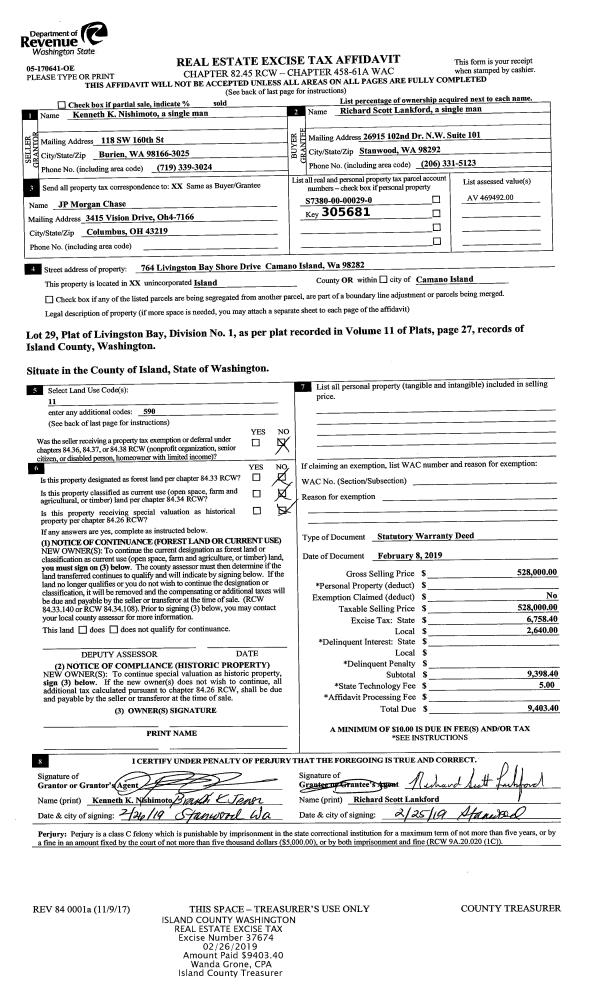 | Mailing Address: | 7711 SCATCHET HEAD RD CLINTON, WA 98236 | % Ownership: | 100.0000000000% |