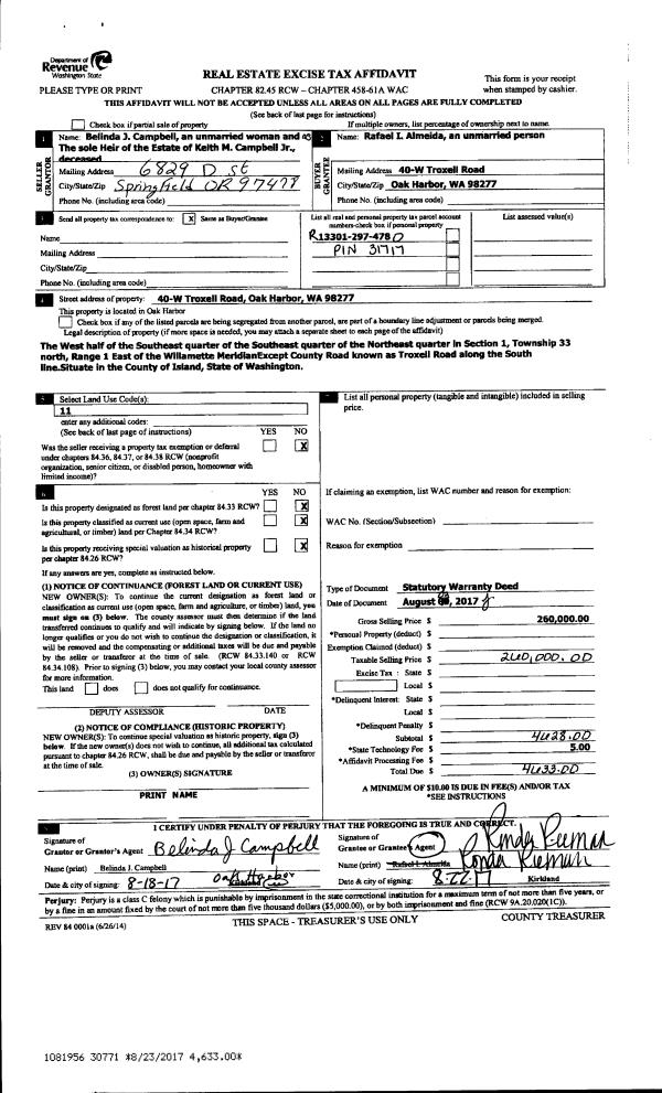 | Tax Area: | 712 - APPRAISER-S Whid Schl Dist, outside Langley, improved, greater than 1 acre | Land Use Code | 11 |