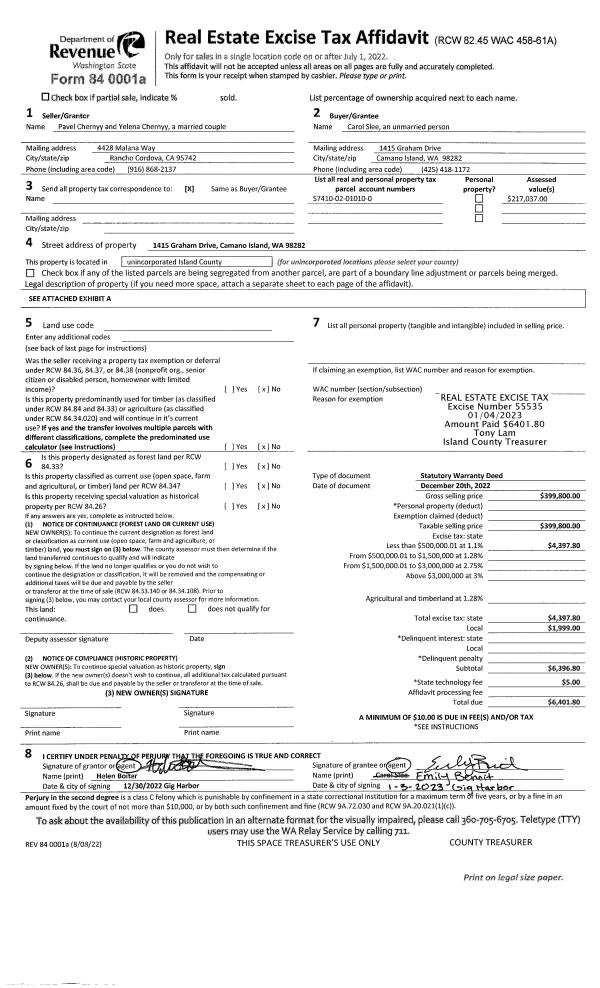| Mailing Address: | 7616 S GLENDALE HEIGHTS RD CLINTON, WA 98236 | % Ownership: | 100.0000000000% |