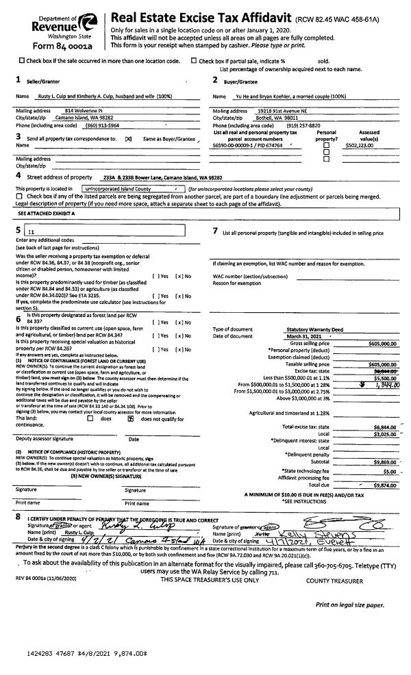 | Tax Area: | 719 - APPRAISER-S Whid Schl Dist, outside Langley, vacant & 50 acres or less | Land Use Code | 91 |