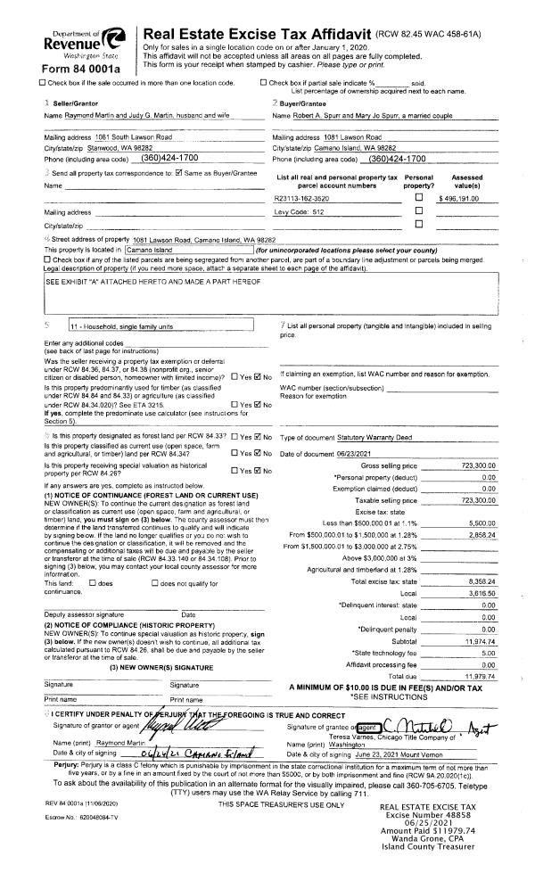 | Tax Area: | 719 - APPRAISER-S Whid Schl Dist, outside Langley, vacant & 50 acres or less | Land Use Code | 91 |