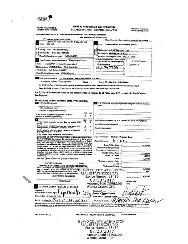 | Mailing Address: | 8320 BEACHVIEW DR CLINTON, WA 98236 | % Ownership: | 100.0000000000% |