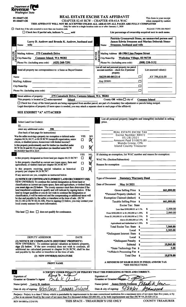 | Mailing Address: | 8316 BAYSHORE DR CLINTON, WA 98236 | % Ownership: | 100.0000000000% |