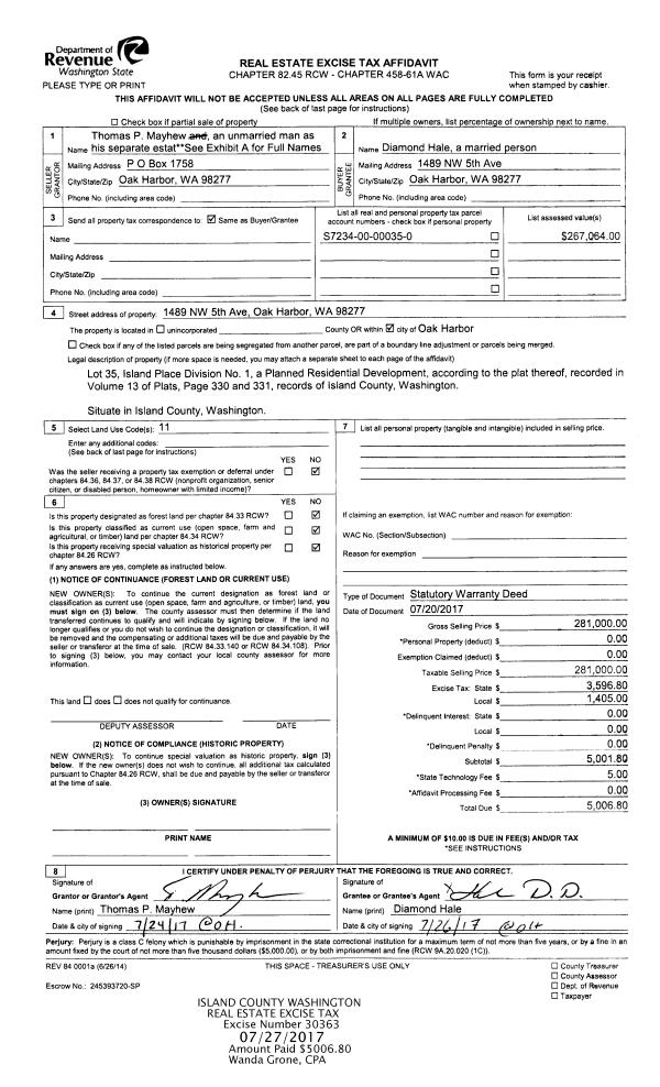 | 1 | 06/19/2017 | WD | Warranty Deed | LEROSS TRUSTEE, LESTER M | WHIDBY, DOUGLAS K | | | $1,400,000.00 | 29892 | 4424881 |