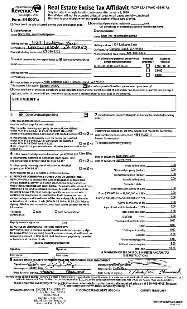 | Tax Area: | 719 - APPRAISER-S Whid Schl Dist, outside Langley, vacant & 50 acres or less | Land Use Code | 91 |