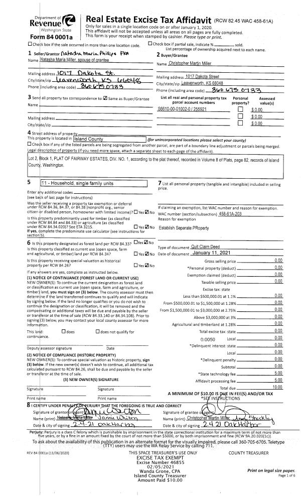 | Mailing Address: | ALISON L DALE-MOORE 8145 POSSESSION RIDGE LN CLINTON, WA 98236 | % Ownership: | 100.0000000000% |