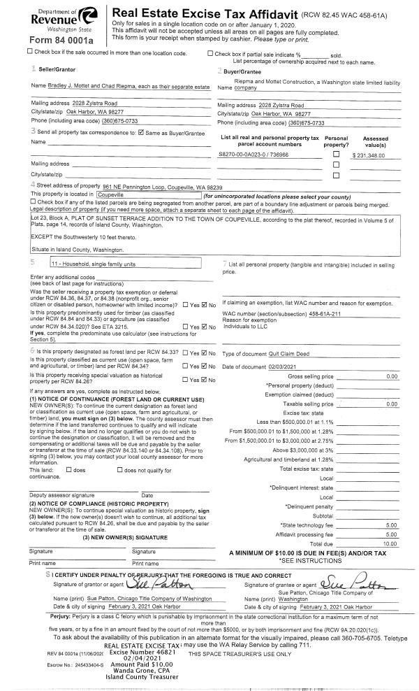 | Mailing Address: | 8023 SCATCHET HEAD RD CLINTON, WA 98236 | % Ownership: | 100.0000000000% |