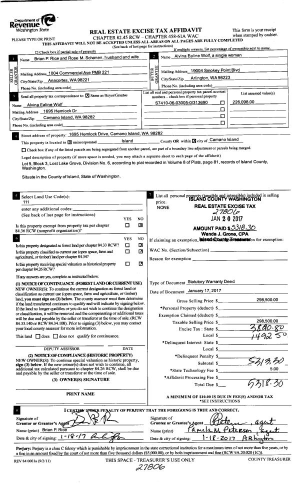 | 1 | 12/28/2016 | PRD | Personal Representatives Deed | GISWOLD, ROBERT | GISWOLD, SARA J | | | $0.00 | 27833 | 4415738 |