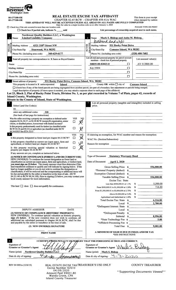 | Mailing Address: | 4276 WATEREDGE DR LANGLEY, WA 98260 | % Ownership: | 100.0000000000% |