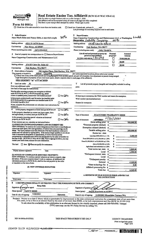 | Mailing Address: | 1705 235TH PL SW BOTHELL, WA 98021-9297 | % Ownership: | 100.0000000000% |