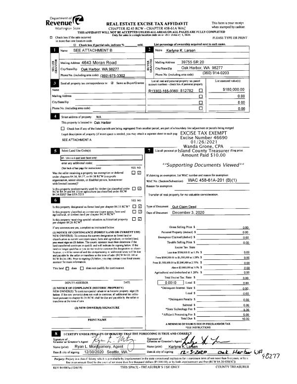 | Mailing Address: | PO BOX 1106 CLINTON, WA 98236-1106 | % Ownership: | 100.0000000000% |