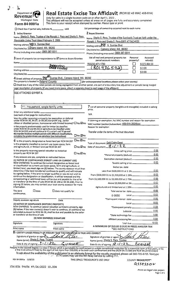 | 1 | 03/09/2022 | QCD | Quit Claim Deed | ARCEO, FLORENCIO C | ARCEO TTEE, FLORENCIO | | | $0.00 | 52437 | 4542133 |