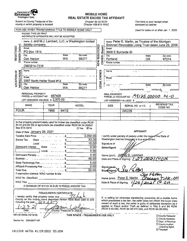 | Mailing Address: | 3221 BROOKS HILL RD LANGLEY, WA 98260 | % Ownership: | 100.0000000000% |
