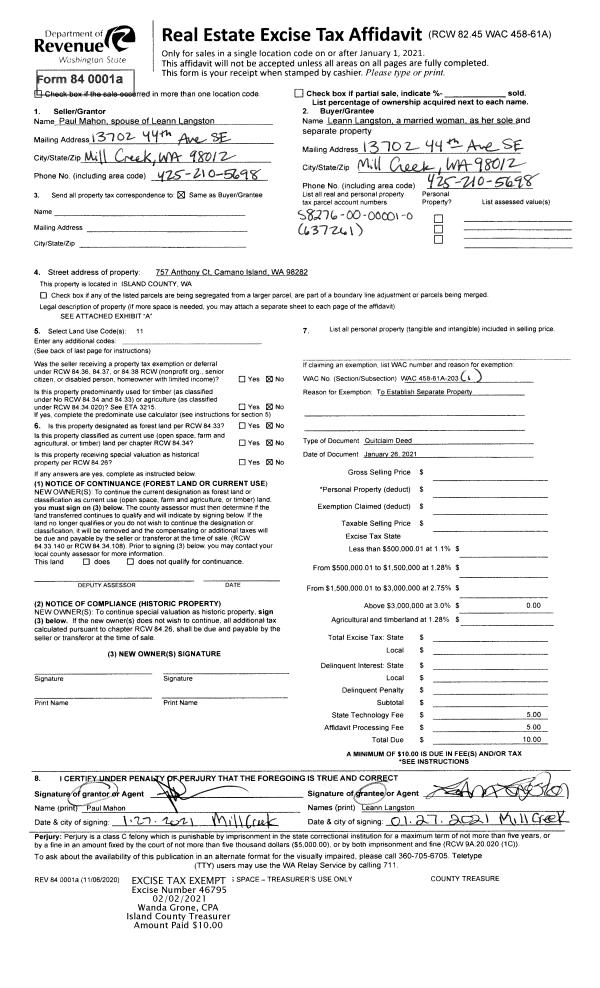 | Tax Area: | 712 - APPRAISER-S Whid Schl Dist, outside Langley, improved, greater than 1 acre |