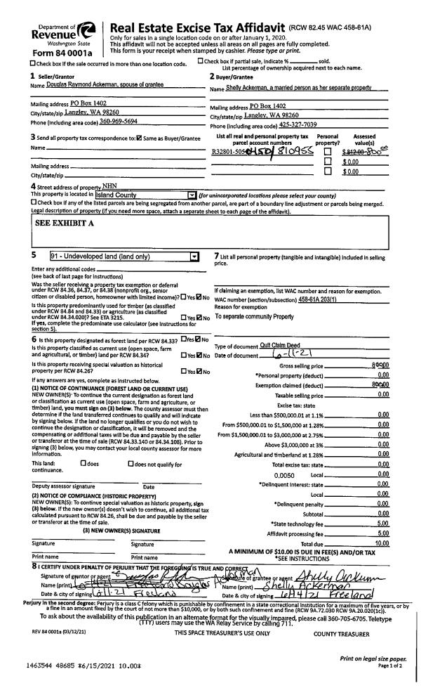 | Tax Area: | 719 - APPRAISER-S Whid Schl Dist, outside Langley, vacant & 50 acres or less | Land Use Code | 91 |