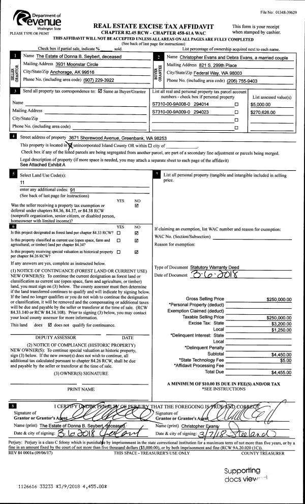 | Mailing Address: | ELOISE T SHELDON 5427 BAYVIEW RD LANGLEY, WA 98260 | % Ownership: | 100.0000000000% |