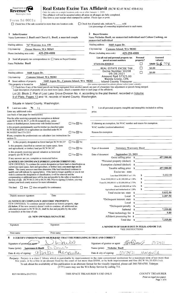 | Mailing Address: | JANAE CAMERON 3604 RIVENDELL RD LANGLEY, WA 98260 | % Ownership: | 100.0000000000% |