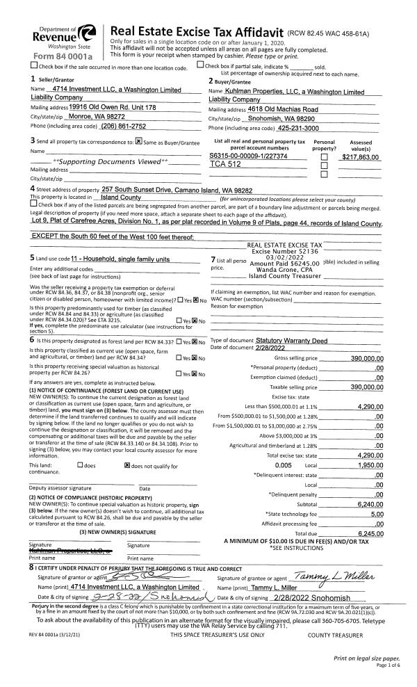 | Tax Area: | 710 - APPRAISER-S Whid Schl Dist, outside Langley, improved & 1 acre or less | Land Use Code | 11 |