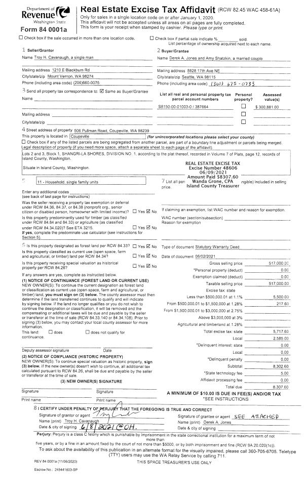 | Tax Area: | 719 - APPRAISER-S Whid Schl Dist, outside Langley, vacant & 50 acres or less | Land Use Code | 91 |