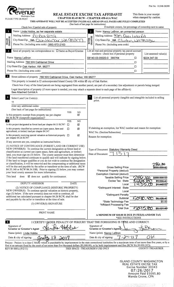 | Tax Area: | 712 - APPRAISER-S Whid Schl Dist, outside Langley, improved, greater than 1 acre | Land Use Code | 11 |