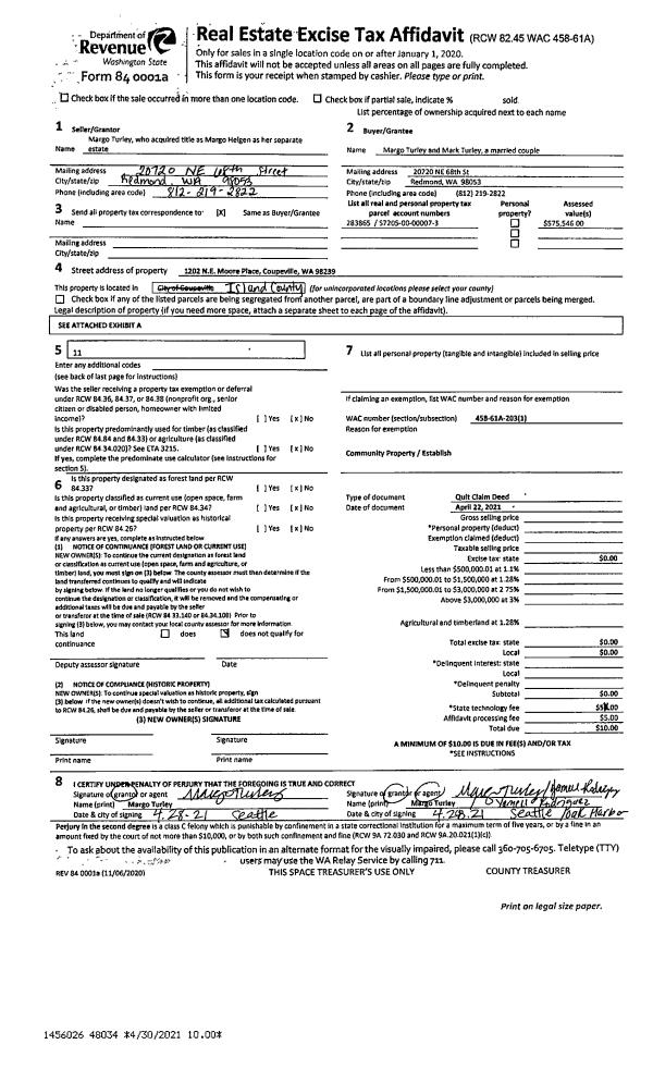 | Tax Area: | 712 - APPRAISER-S Whid Schl Dist, outside Langley, improved, greater than 1 acre | Land Use Code | 11 |