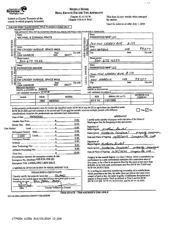 | Mailing Address: | 4291 EAST CLYDE RD LANGLEY, WA 98260 | % Ownership: | 100.0000000000% |