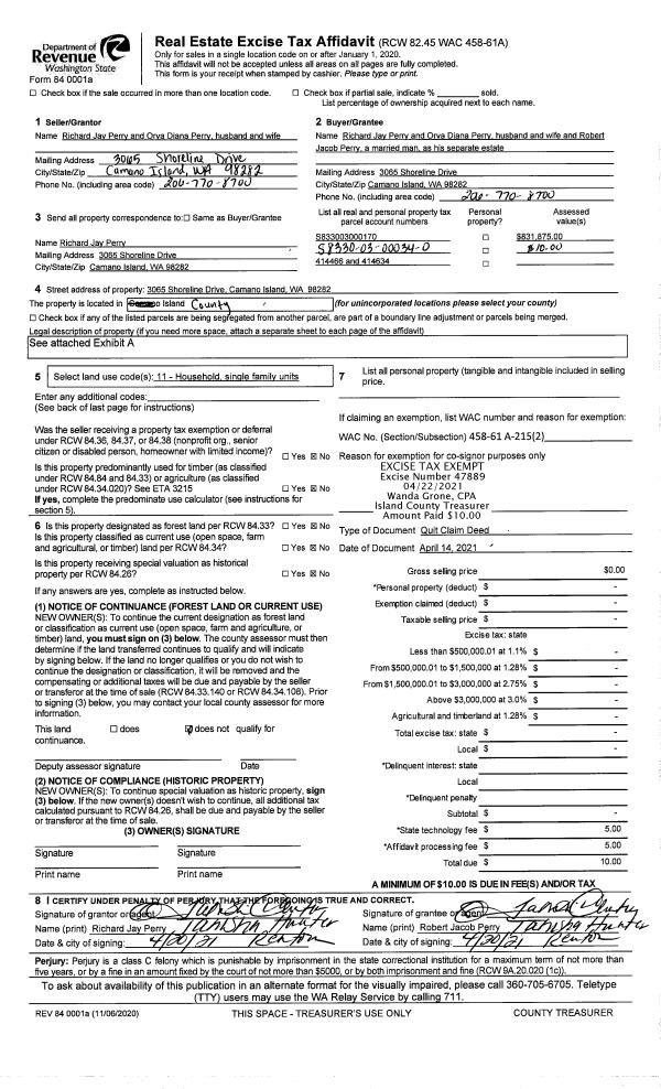 | Mailing Address: | 5965 PIONEER PARK PLACE LANGLEY, WA 98260-8506 | % Ownership: | 100.0000000000% |