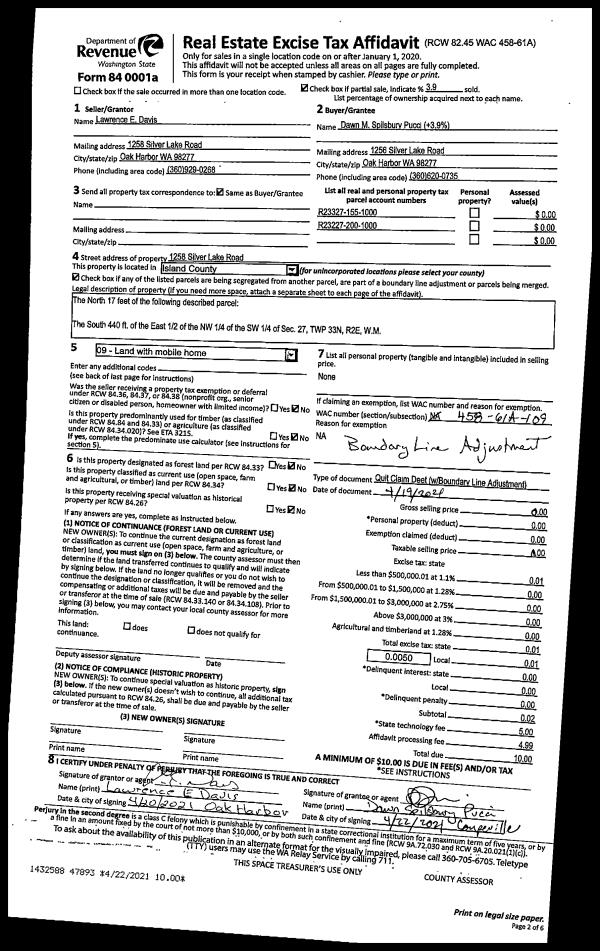 | Mailing Address: | 5906 PIONEER PARK DR LANGLEY, WA 98260 | % Ownership: | 100.0000000000% |