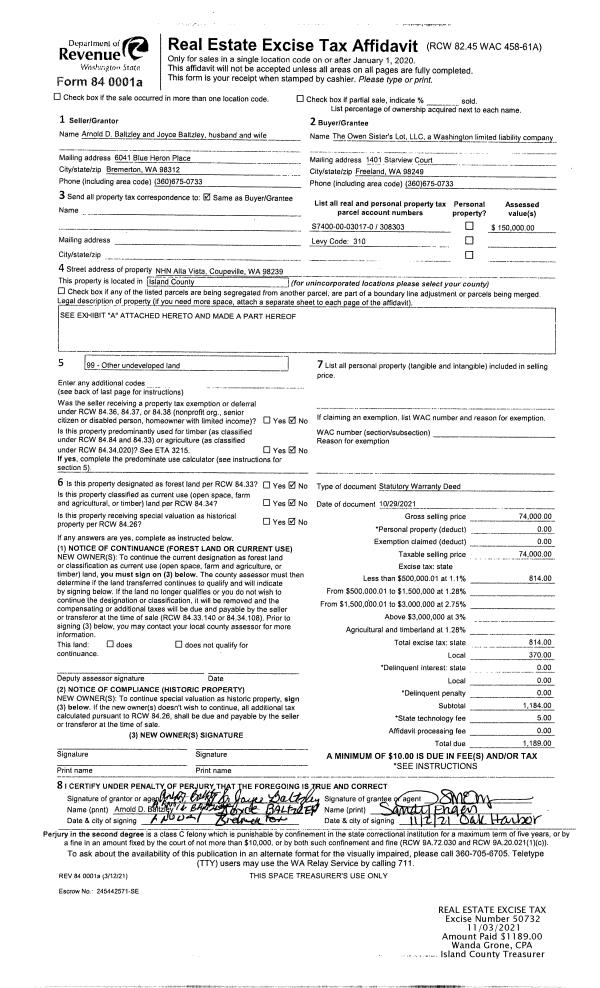 | Tax Area: | 719 - APPRAISER-S Whid Schl Dist, outside Langley, vacant & 50 acres or less | Land Use Code | 91 |