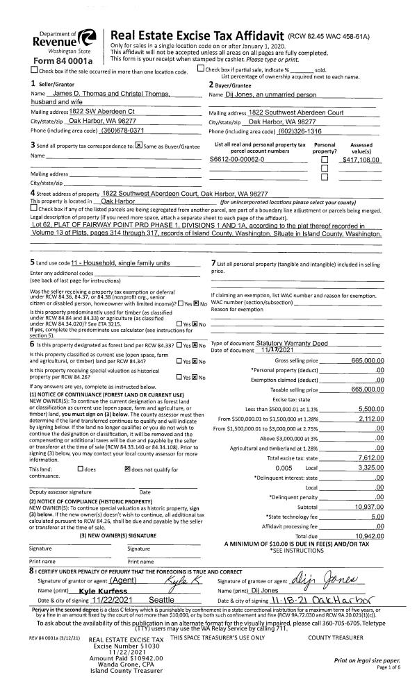 | Tax Area: | 712 - APPRAISER-S Whid Schl Dist, outside Langley, improved, greater than 1 acre | Land Use Code | 11 |
