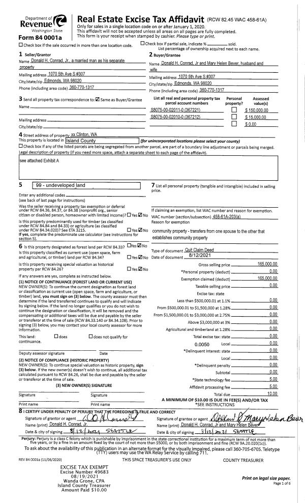 | Tax Area: | 712 - APPRAISER-S Whid Schl Dist, outside Langley, improved, greater than 1 acre | Land Use Code | 11 |