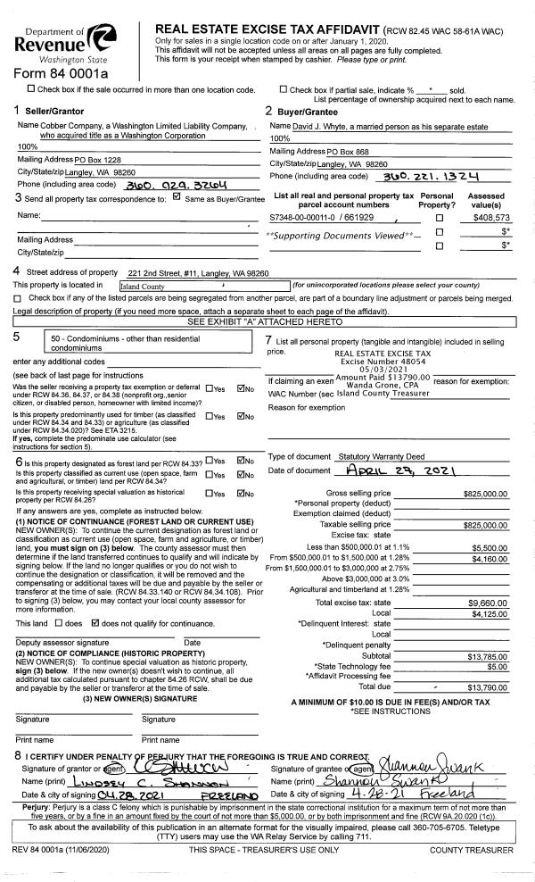 | Tax Area: | 710 - APPRAISER-S Whid Schl Dist, outside Langley, improved & 1 acre or less | Land Use Code | 11 |