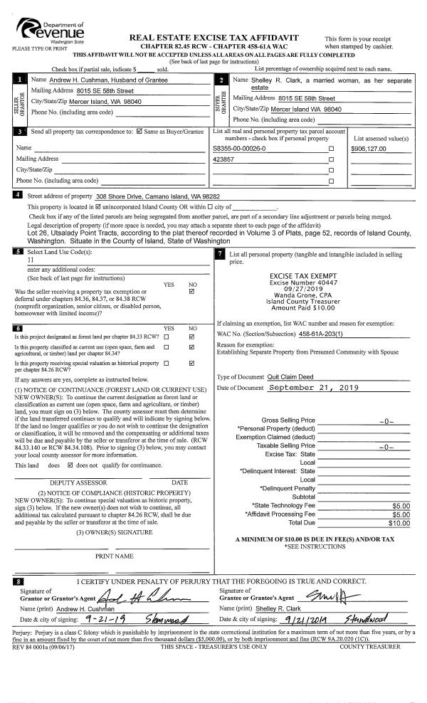 | Tax Area: | 810 - APPRAISER-S Whid Schl Dist, Diking District#1, improved & 1 acre or less | Land Use Code | 91 |