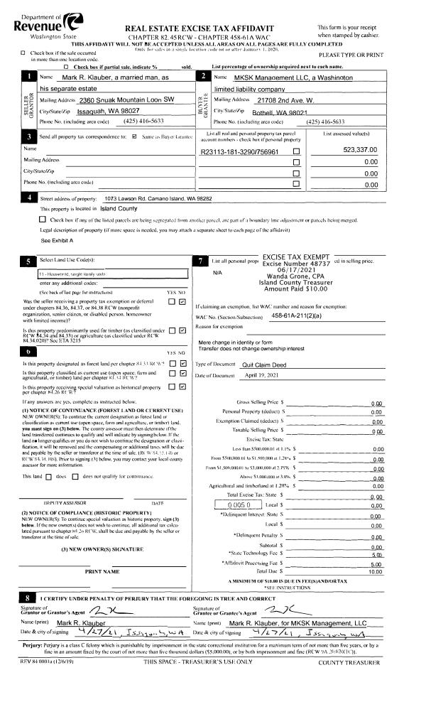| Mailing Address: | 5960 CEDAR ST FREELAND, WA 98249 | % Ownership: | 100.0000000000% |