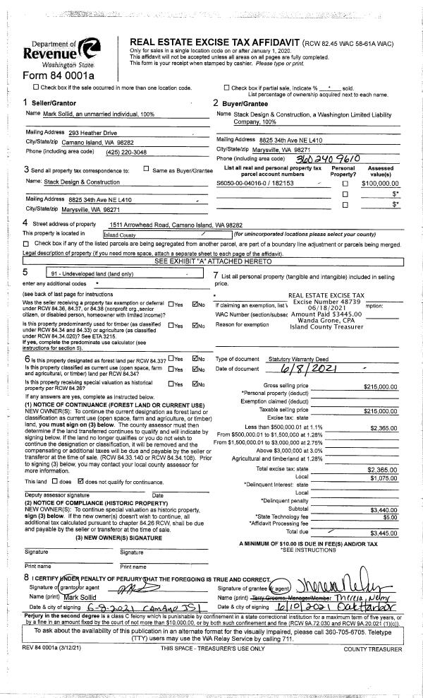 | Tax Area: | 812 - APPRAISER-S Whid Schl Dist, outside Langley, improved, greater than 1 acre | Land Use Code | 11 |