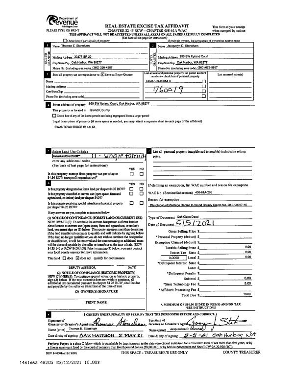 | Tax Area: | 719 - APPRAISER-S Whid Schl Dist, outside Langley, vacant & 50 acres or less | Land Use Code | 91 |
