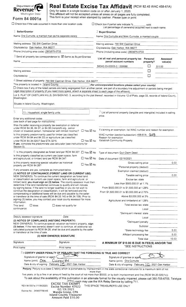 | Mailing Address: | 1415 84TH ST SE OFC EVERETT, WA 98208-2122 | % Ownership: | 100.0000000000% |