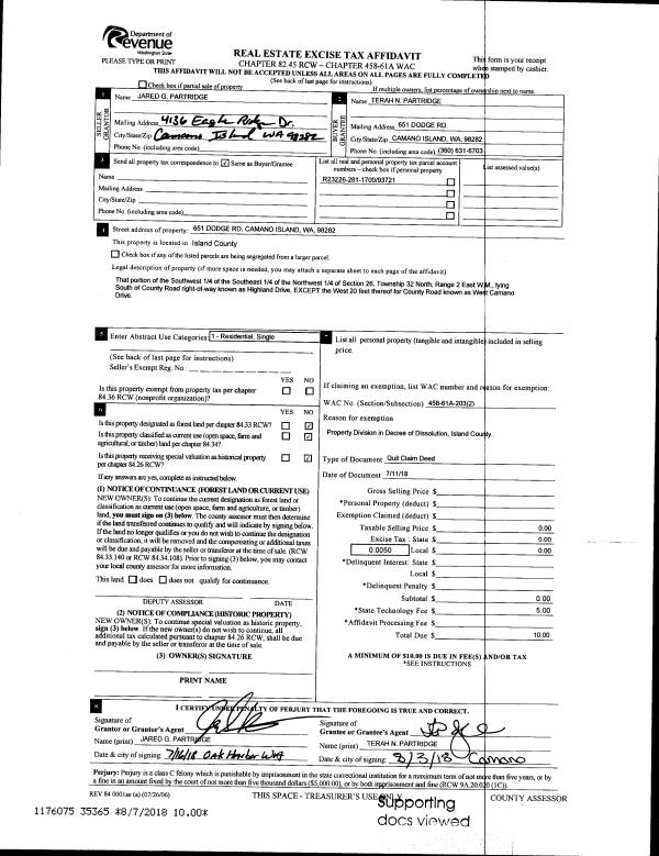 | 2 | 04/05/2018 | QCD | Quit Claim Deed | BUTLER, WILLIAM J / ELIZABETH | BUTLER FAMILY, LLC | | | $0.00 | 34250 | 4445067 |