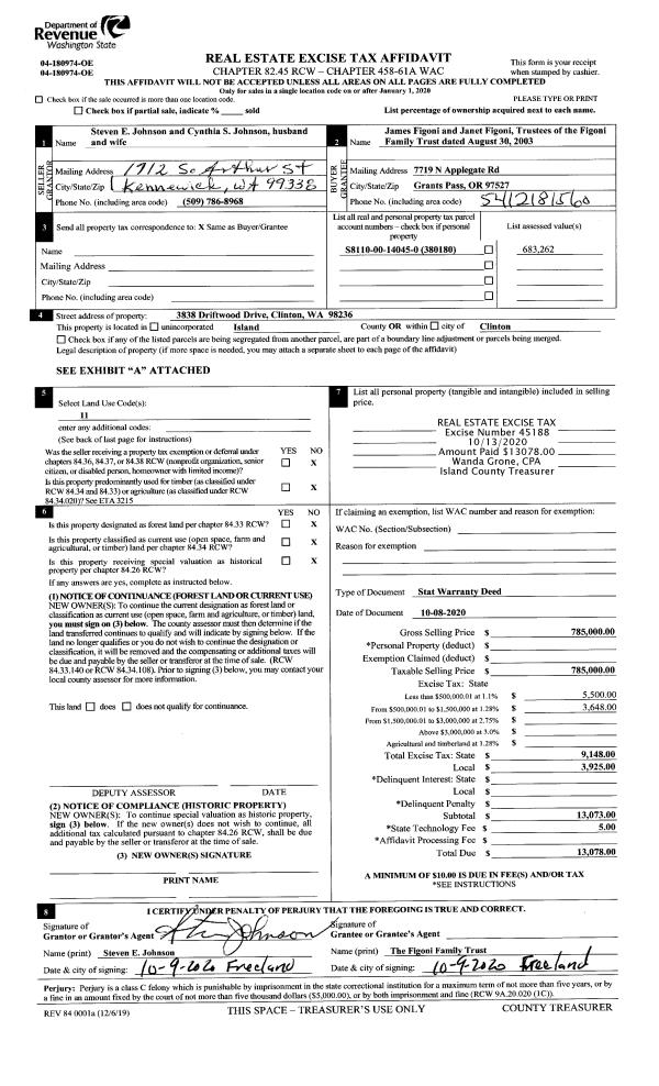 | Mailing Address: | 3079 HUGH TAYLOR LN CLINTON, WA 98236 | % Ownership: | 100.0000000000% |